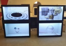 遠景多媒體提供多種尺寸的透明LCD顯示器,尺寸從 24 吋到 86 吋 皆可選擇,能依不同空間與應用需求進行規劃配置。我們同時提供設備買斷與租賃兩種服務模式,無論是長期安裝或展覽、活動等短期使用需求,都能提供完整的解決方案。此外,超過 86 吋的大型顯示需求,也可透過多台透明LCD拼接,或採用大型透明LCD箱體進行客製化設計,打造更具震撼效果的透明顯示牆。